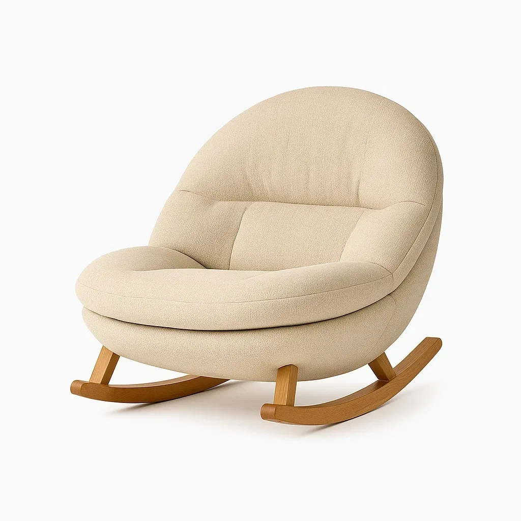 Poltrona in tessuto scamosciato marrone con struttura in legno massiccio