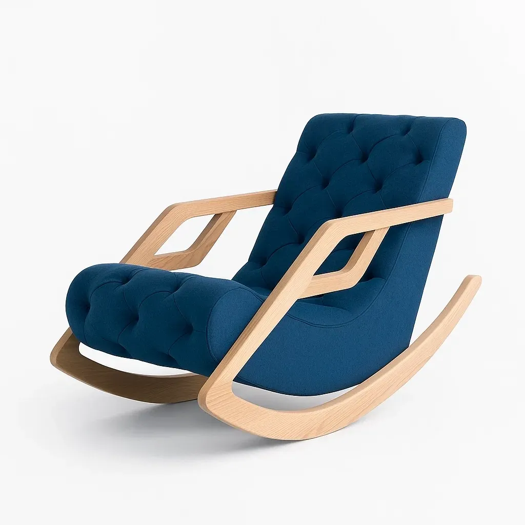 Poltrona in tessuto poliestere grigio con struttura in legno